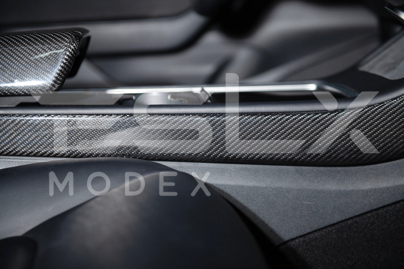 Sleek and Luxurious Appearance: Enhance the interior aesthetics of your Tesla with a sleek carbon fiber pattern that adds a touch of luxury and sophistication to your vehicle Overlay Installation: Designed for a hassle-free overlay installation, you can easily place this cover over the existing interior trim. No complex modifications are required